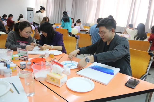 在肌理画美术制作活动中,公司老师和结亲员工通过油画框、颜料、石英砂、刮刀、画笔等材料和工具在教育系张梅老师的指导下,聚砂成画、妙笔生花,以春天为主题手工制作了一幅幅精美的肌理画。