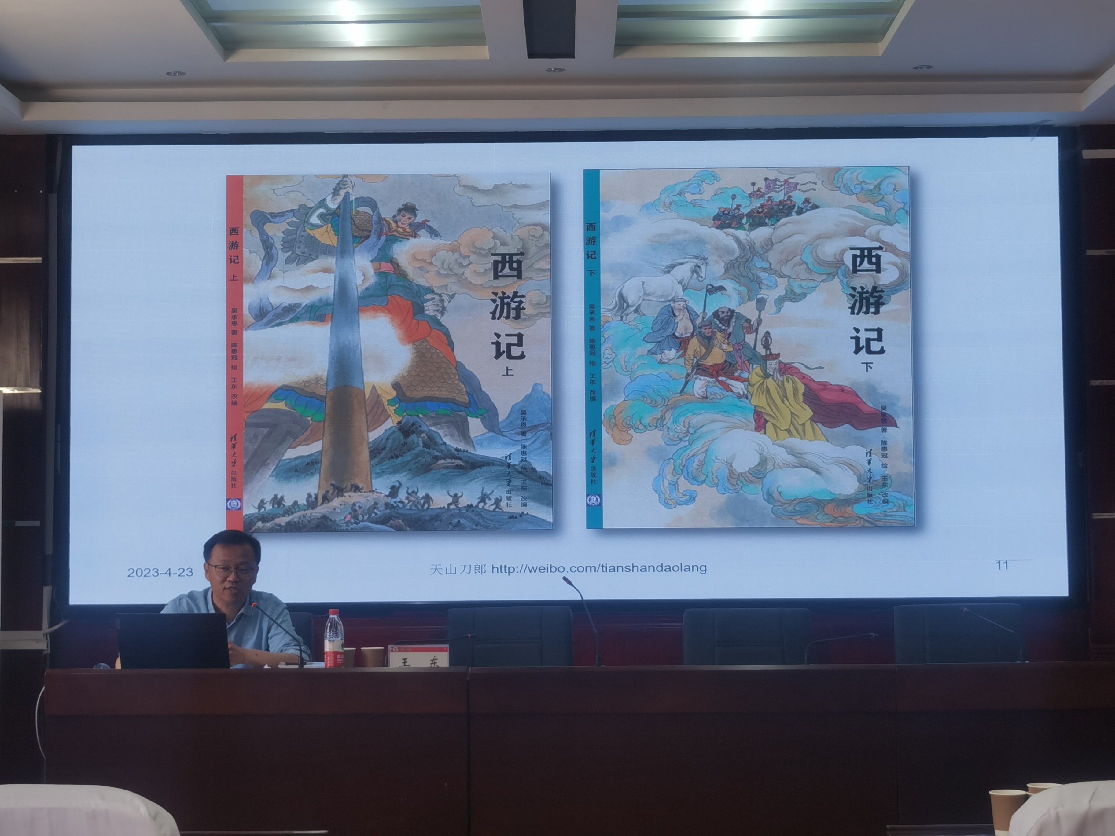 王东老师以我国国民阅读现状为切入点,指出当今浅阅读现象普遍存在,整体阅读状况不容乐观。王东老师结合自身经验和教学经历介绍了自己出版的《于遥远处听细微》和《西游记》两本书籍。王老师以经典著作为载体,为我们娓娓道来他与每本书的故事。每本书都承载了老师的往昔峥嵘岁月,也让研究生们无比向往老师与友人交谈书中趣闻时的闲适自在。最后,王东老师倡导大家珍惜现在的时光,多读书,时刻铭记“立身以立学为先,立学以读书为本”,从书本中汲取生命的力量。