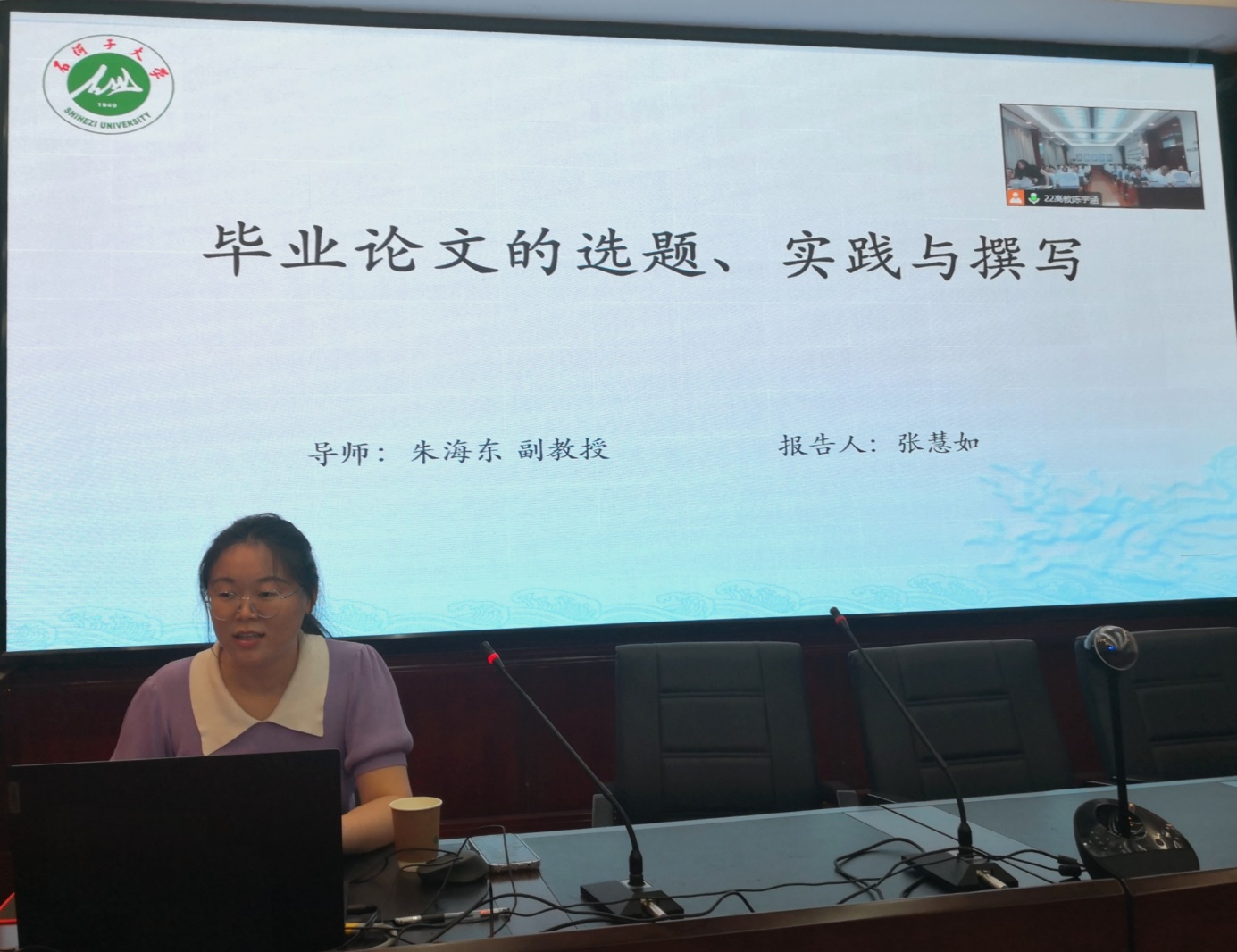 张慧如已发表两篇CSSCI期刊论文、一篇SSCI期刊,参加了第二十四届全国心理学学术会议、新疆心理学会2022年学术年会等5次重大会议并作报告展示。她以“毕业论文的选题、实践与撰写”为主题,从确定研究选题、研究设计及实施、数据管理及分析、论文撰写及定稿四个方面对毕业论文的撰写过程进行抽丝剥茧,为同学们指点迷津。张慧如强调了大纲的重要性,她指出在大纲撰写阶段要多跟导师进行沟通,重视前期准备工作,为后期写作过程打下坚实基础。同时,她向大家展示了她的毕业论文的整体架构,以帮助各位同学更为清晰地感知毕业论文的完成度以及最终呈现效果。
