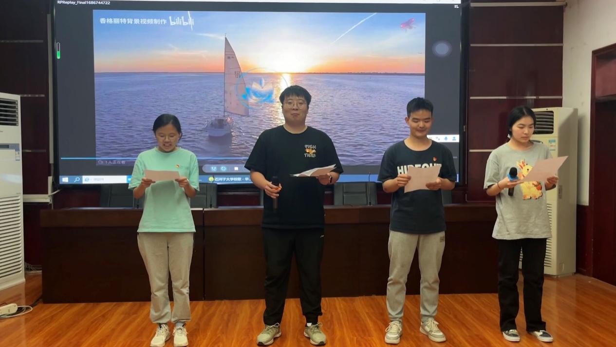 党课后,教师代表公司向2023届毕业生党员赠送了纪念品。本科生党支部和研究生党支部分别以合唱和诗朗诵的形式表达了对公司、老师和同学们的感谢,对大学、研员工活的留恋,以及对未来美好生活的憧憬。同学们的真情表演深深地感染了台下的观众,赢得了一次次热烈的掌声。