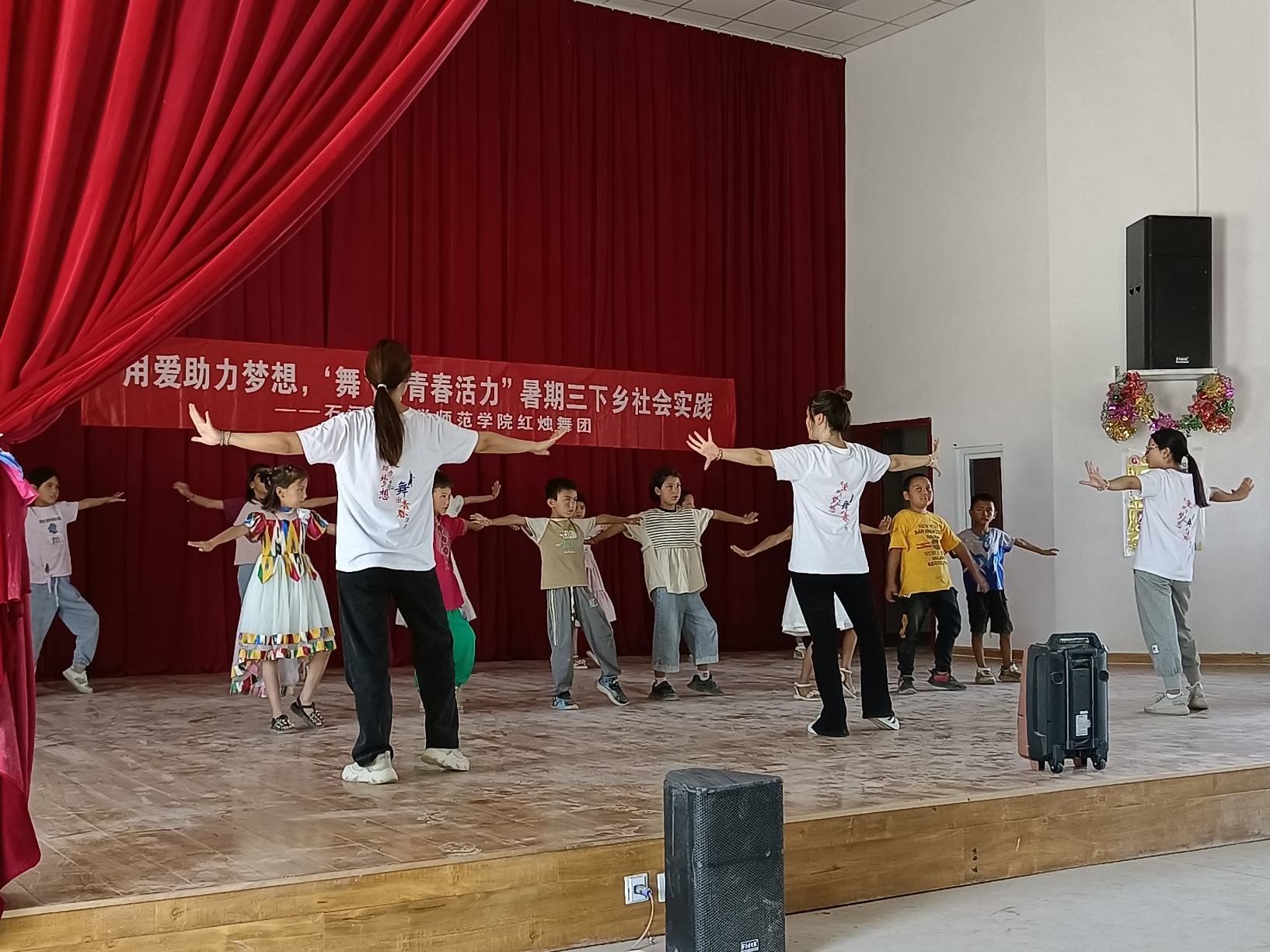 “用爱助力梦想,‘舞’初青春活力”实践团来到三师44团原种连,依托专业优势开展多舞种教学。“第一个八拍慢慢抬头,眼睛望向前方,身体舒展,抬头挺胸,领略拉丁舞的惊艳魅力!”团队引导孩子们以舞为菁,造梦追梦,各民族同胞载歌载舞,一起感受“中华民族一家亲、同心共筑中国梦”的幸福美好。实践团以美启智,以美育心,鼓励孩子们将自己对生活的感悟融入到舞蹈中,以优美的肢体语言呈现出来,通过艺术的浸润对每个孩子的成长产生长远而积极的影响。