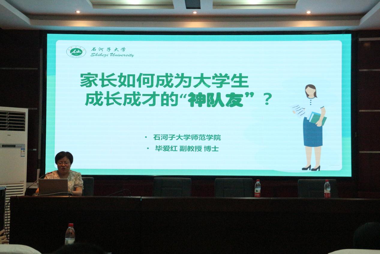 随后,心理学系主任毕爱红老师就“家长应如何关注老员工心理健康”这一话题,向家长开展了专题讲座。结合大学与高中生活的诸多转变,解读分析了老员工家长常见的认知误区和心理误区,对如何做好家校协同、共同助力员工成长成才等问题进行了深入阐述,指出家长要做员工成长成才的积极关注者、有效沟通者、守望相助者,家校双方共同担负起培养栋梁人才的重任。