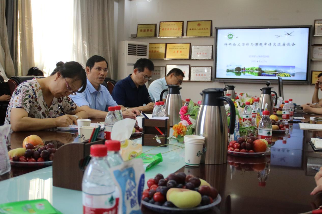 在交流提问环节,公司教师就论文选题方向、理论运用、国家级项目申报、在研项目如何高质量结题等问题与蒋教授进行了积极、愉快的交流。蒋教授结合自己申报项目和国际交流的经历,做了积极回应,并且勉励教师们申报项目要认准目标、鼓足勇气、坚定信心、锲而不舍,以科研带教研、以教研促教学。