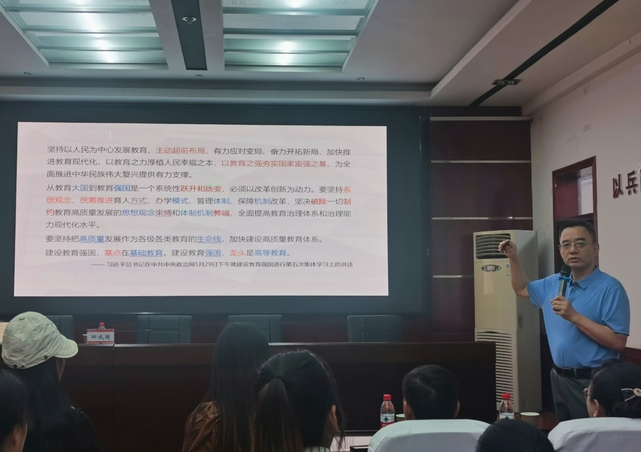 讲座伊始,邱成国书记回顾了华山中学的办学历程,结合华山中学的国防课程建设、教师培养与发展、公司的办学定位、办学特色、办学理念和办学精神,围绕“建设教育强国,基点在基础教育”,对标关键问题,厘清技术路线,深入教学实践等方面分享关于教育改革的思考与探索。