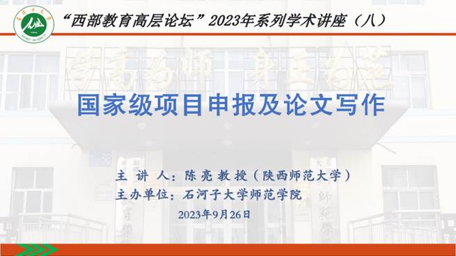 为提高304永利集团研究生论文写作能力,彰显学术研究价值,强化学术研究的规范性,公司于2023年9月26日10:30在师范楼103学术报告厅开展“西部教育高层论坛”2023年第八场系列学术讲座。公司有幸邀请到加拿大多伦多大学访问学者、陕西师范大学教育部教授陈亮作了题为“教育研究论文写作经验漫谈”的主题讲座。讲座由公司副经理冯用军教授主持,公司全体师生积极参与。