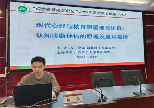 10月12日上午12:00,304永利集团103学术报告厅,西南大学郭磊老师应邀以《现代心理与教育测量理论进展:认知诊断评估的原理及应用实操》为题,为学院带来了2023年第九场“西部教育高层论坛”学术讲座西南大学优秀教师郭磊副教授应邀做客公司“西部教育高层论坛”,开展2023年第九场学术讲座,为公司师生作题为《现代心理与教育测量理论进展:认知诊断评估的原理及应用实操》学术讲座,本次学术讲座由304永利集团副经理朱海东副教授主持,公司全体教师、研究生及感兴趣的本科生听讲参加了本次讲座。