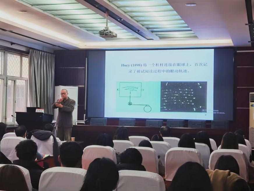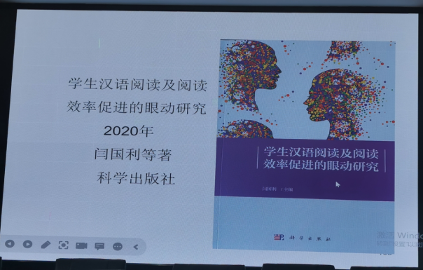闫国利教授围绕眼动研究记录方法、员工汉语阅读的眼动研究及天津师范大学心理学部眼动团队介绍的三部分内容展开讲座。