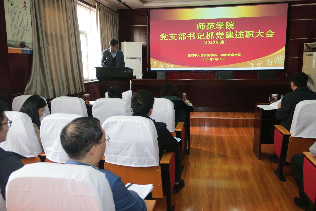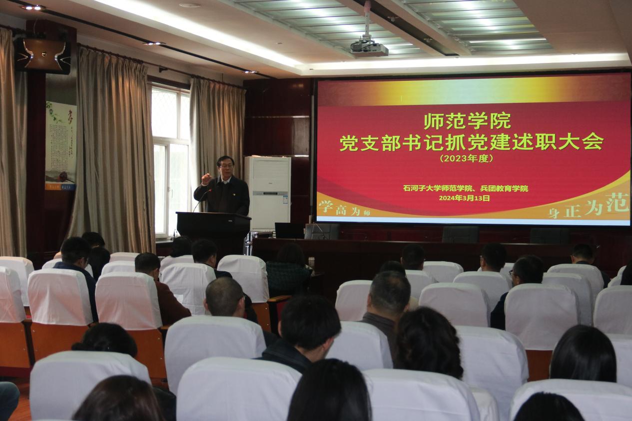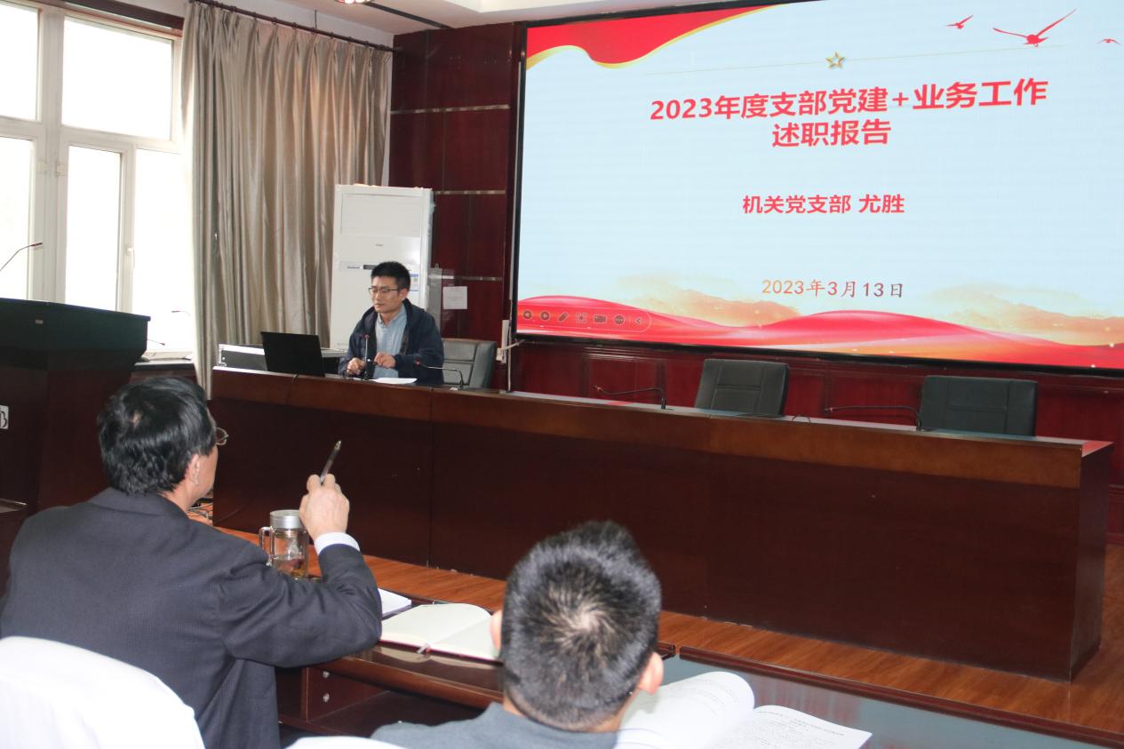 313下午公司103报告厅召开2023年度党支部书记抓基层党建述职大会。会议由公司党委副书记叶壮主持,院领导、各党支部书记、支部委员、各系主任、教师及员工党员代表,共计46人参加了会议。