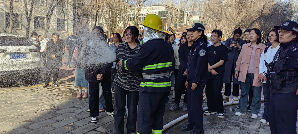 演练结束后,保卫处消防人员还演示了干粉灭火器和消防栓的正确使用方法。同学们积极参与感受消防栓的使用。希望师生们提高自我防范意识,共同为筑起一道坚固的安全防线。