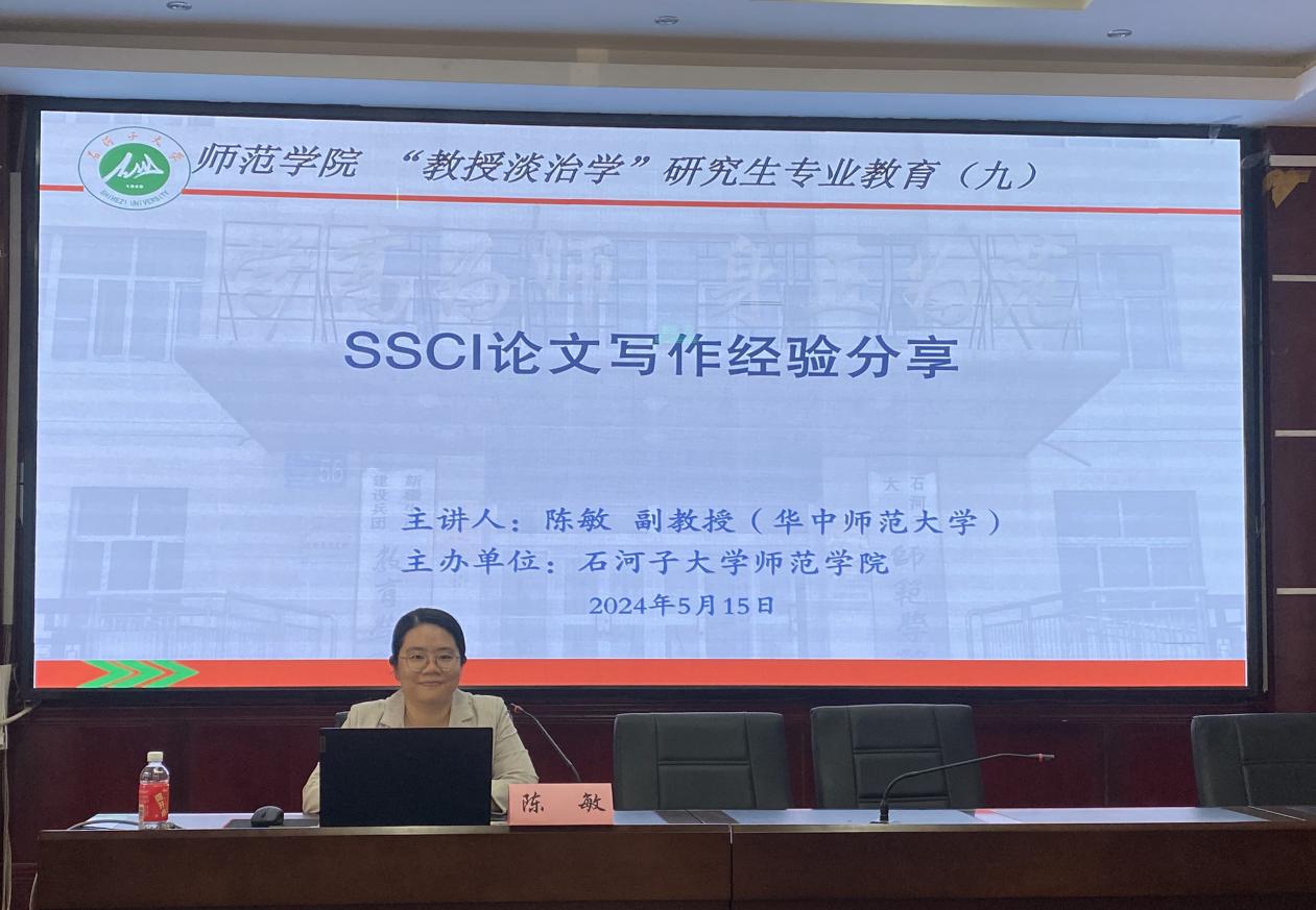 为加强公司研究生专业教育,提升学术论文撰写与发表能力,5月15日304永利集团迎来了一场特别的学术盛宴——第九次“教授谈治学”研究生专业教育专题讲座。本次讲座有幸邀请到华中师范大学人工智能教育学部副教授、博士生导师陈敏老师,为大家带来了主题为“SSCI论文写作经验分享”的精彩讲座。讲座由教育技术系主任张红艳教授主持,吸引了公司研究生及众多感兴趣的教师参加。