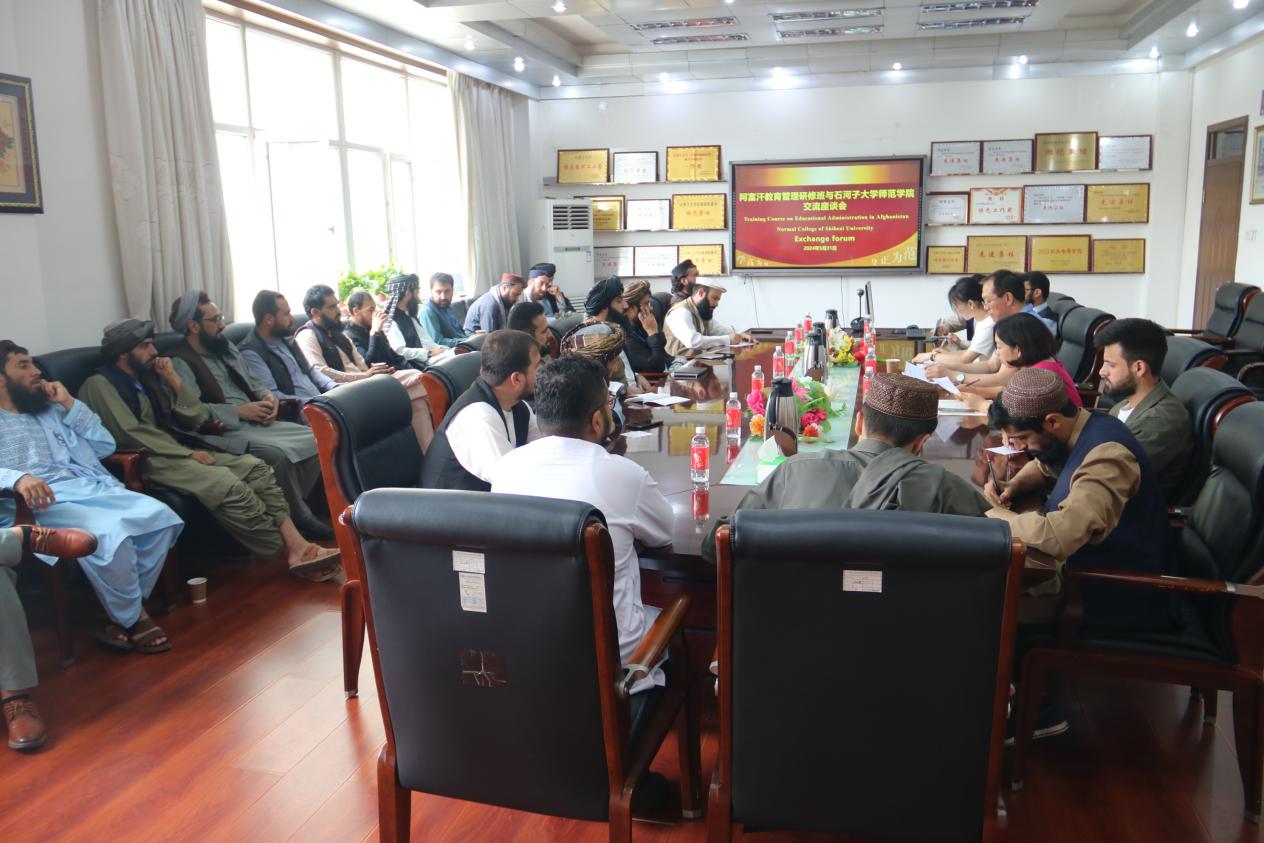 随后,来自阿富汗教育管理研修班的学员介绍了阿富汗教育的基本情况。并就教育方面的投入、普及率、政府支持等方面做了交流。
