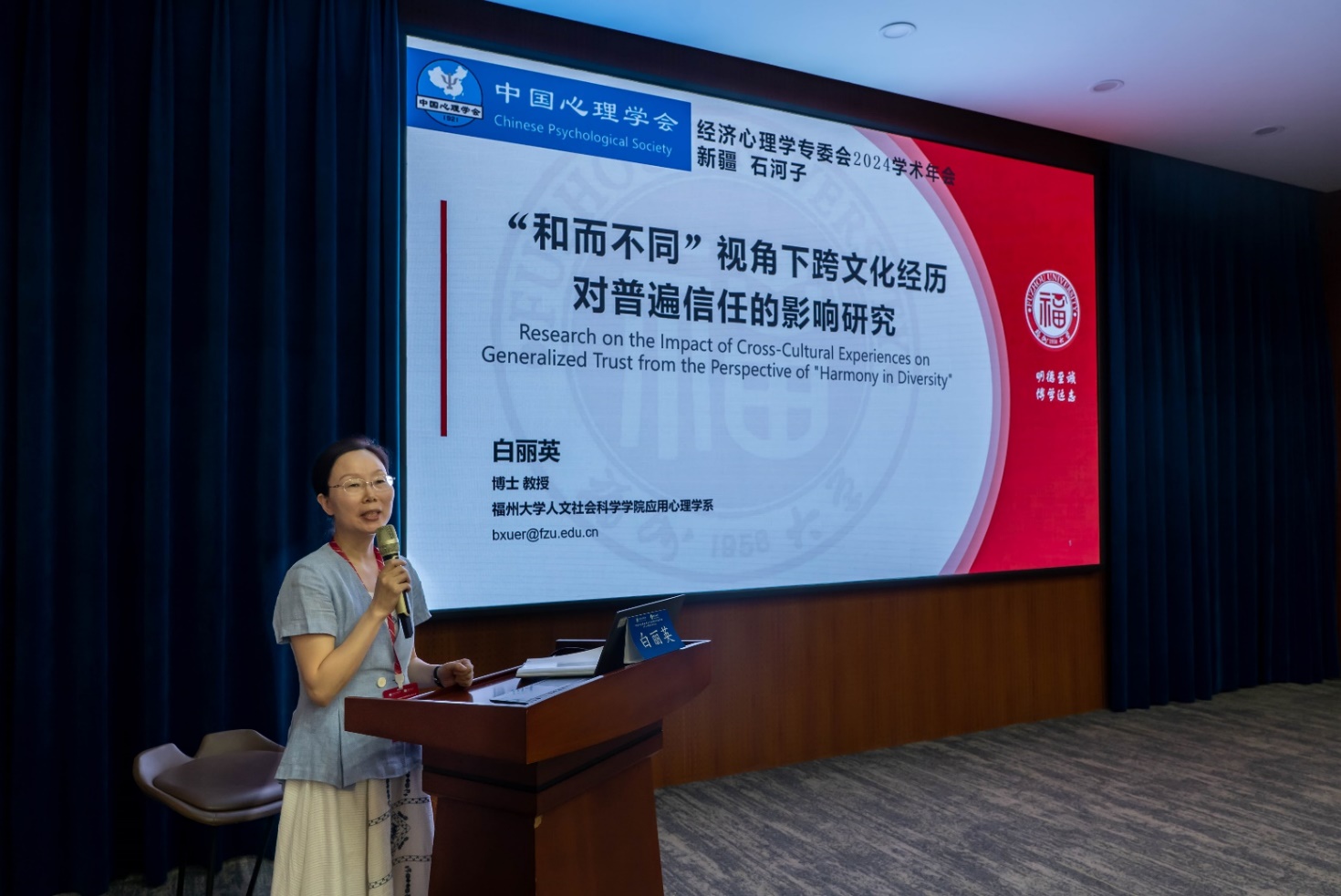 福州大学白丽英教授作“‘和而不同’视角下跨文化经历对普遍信任的影响研究”主旨报告