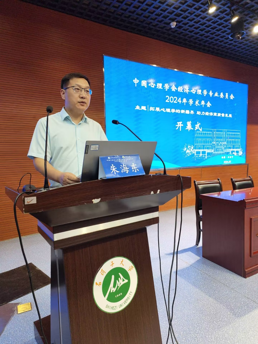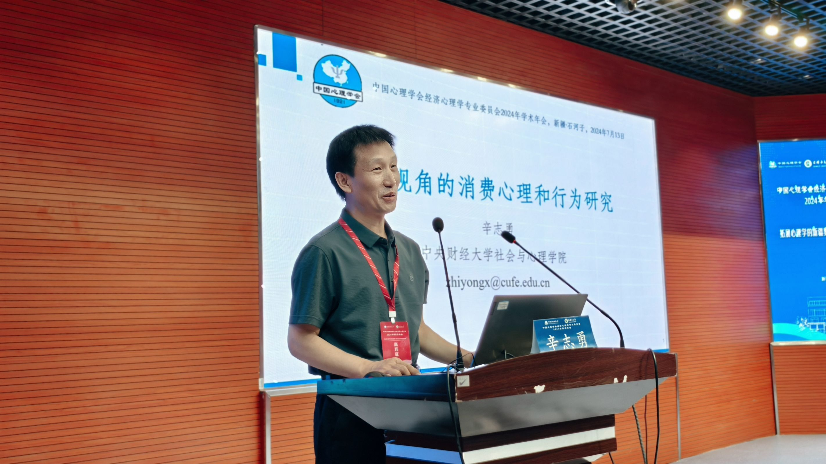 中国心理学会经济心理学专业委员会主任辛自强教授致辞,欢迎来自全国各地的参会代表,提出中国心理学会经济心理学专业委员会的发展目标:立足心理、服务经济、面向中国及对话世界。