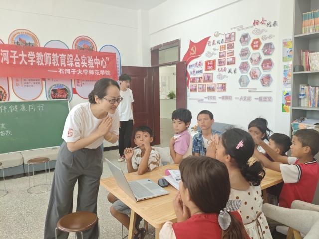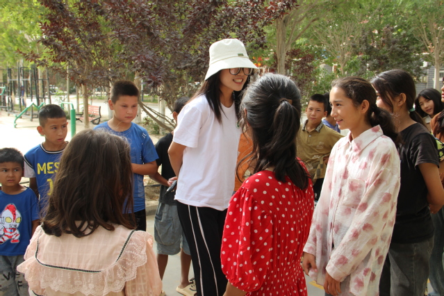 10支实践团奔赴南疆,通过七彩课堂、劳动教育、科普教育、红色教育、理论宣讲等形式,以国家通用语言文字教学、书法教学、歌舞教学、手工教学、体育教学、团体心理辅导等课程为核心板块,将党史故事、党的发展成就融入项目实践中,将党的声音、党的故事传递到南疆各地。