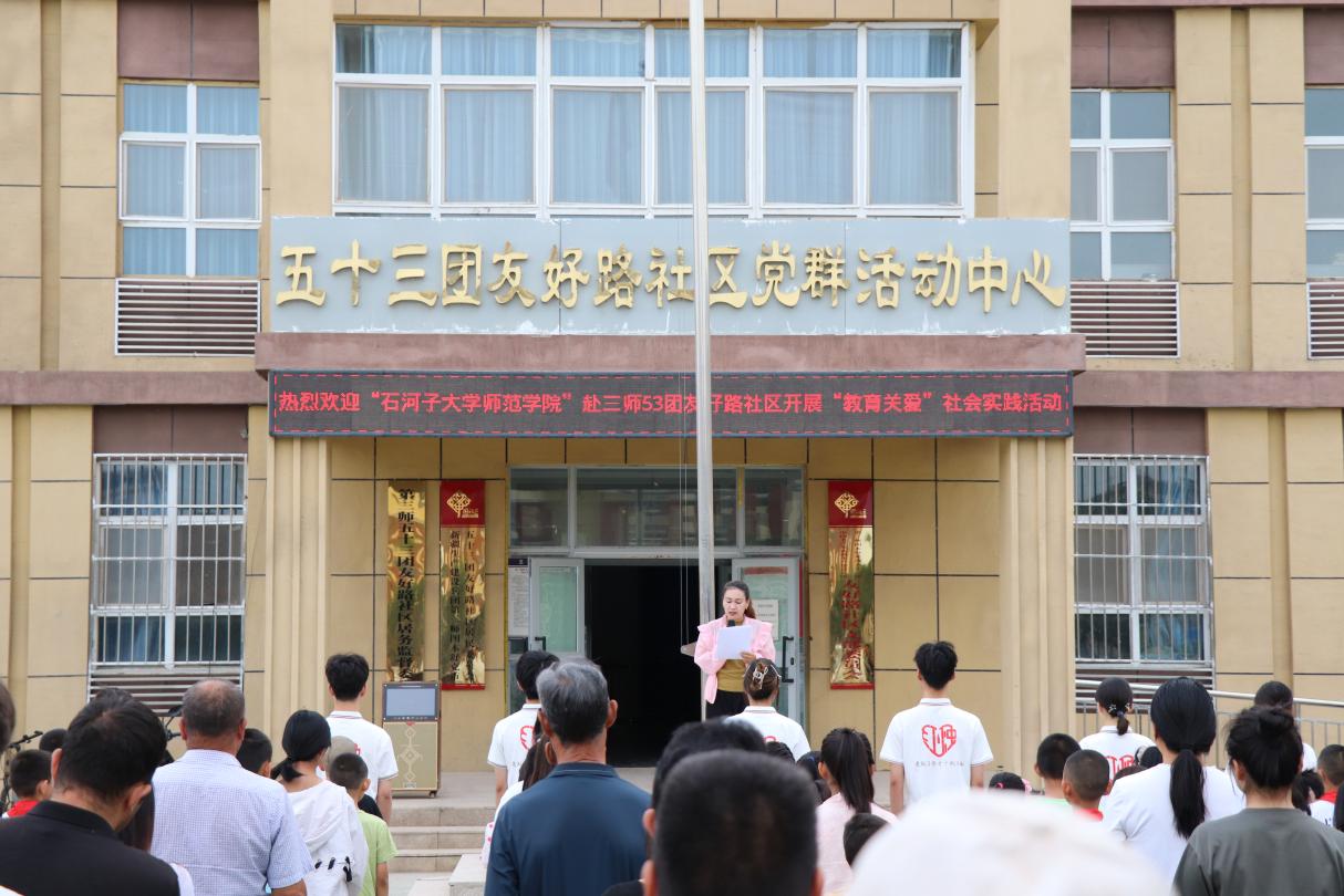 “起来,不愿做奴隶的人们!”7月15日,第三师五十三团金胡杨镇友好路社区举行升旗仪式,实践团成员和社区居民共沐朝晖,共同吟唱起印刻在每一位中国人心中的旋律。“普通话是畅通交流的基础,是连接各民族的纽带。”在与社区居民交流时,居民穆海麦提这样说道,“普通话是每一位中国人都应该掌握的,就像国歌一样,每个人都会唱。”