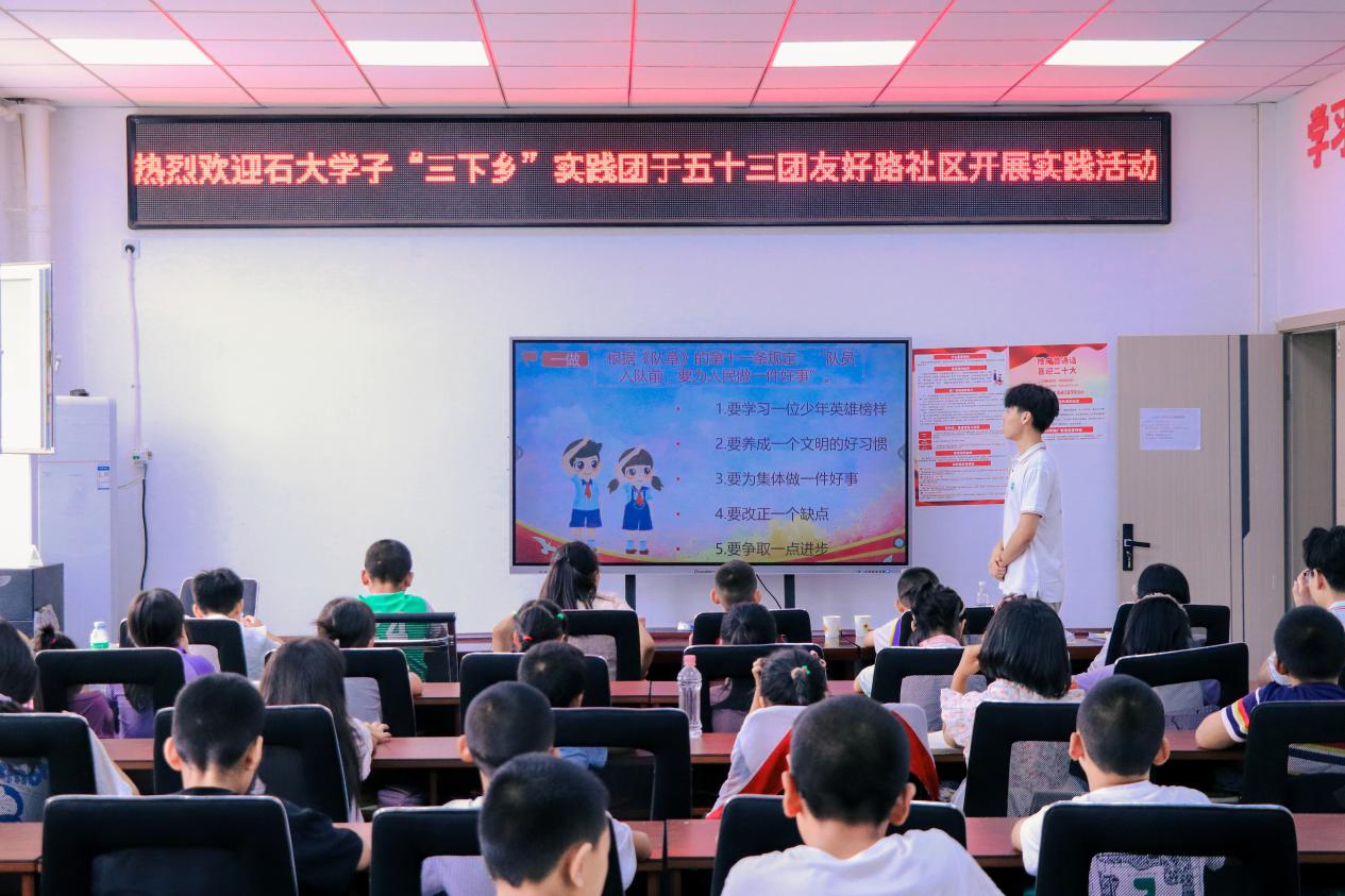 为深入学习贯彻习近平新时代中国特色社会主义思想,落实教育部等九部门关于开展第26届全国推广普通话宣传周活动的通知,进一步服务铸牢中华民族共同体意识,全力助推教育强国、文化强国建设。304永利集团赴三师五十三团教育关爱社会实践服务团走进图木舒克市第三师五十三团金胡杨镇友好路社区,深入各民族青年群体中,根据当地实际情况,构建“五彩”教育推普课堂,助力推广普通话及国家通用语言文字,引导广老员工为中国式现代化奉献青春的磅礴力量。