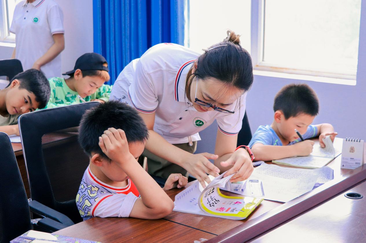 在“五彩”课堂中,实践团成员发掘自身专业优势和兴趣特长,开设书法课堂,带领员工们感受中华优秀传统文化的魅力。书法课上,大手握小手,孩子们认真学习毛笔的握笔姿势,横平竖直、点提撇捺,成员们细心示范,做到“字”“法”并见,田字格内是员工们青涩的大字,在孩子们心中也根植下了“方方正正写字、堂堂正正做人”的意识。以中华优秀传统文化开辟推普新路径,为坚定文化自信,进一步推进文化润疆工程增添亮色。