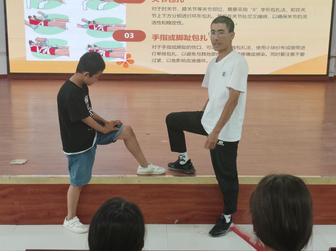 生命安全是教育工作的重中之重,实践团根据实践地实际情况开展了六期安全自护教育活动,涵盖防溺水与心肺复苏、预防中暑、医药知识普及等多个方面。通过理论讲解与实操演练相结合的方式,孩子们不仅掌握了必要的自救互救技能,还增强了自我保护意识。苏麦热姆·阿卜来提在进行了理论学习和模仿实景操作后说:“尤其在暑假期间,家中的大人白天都在工作,就剩我们在家,这次的课程,老师们不仅给我们讲了很多案例,而且通过实操,我学会了一些很实用的急救知识,让我可以在面对危险时更加从容不迫。”