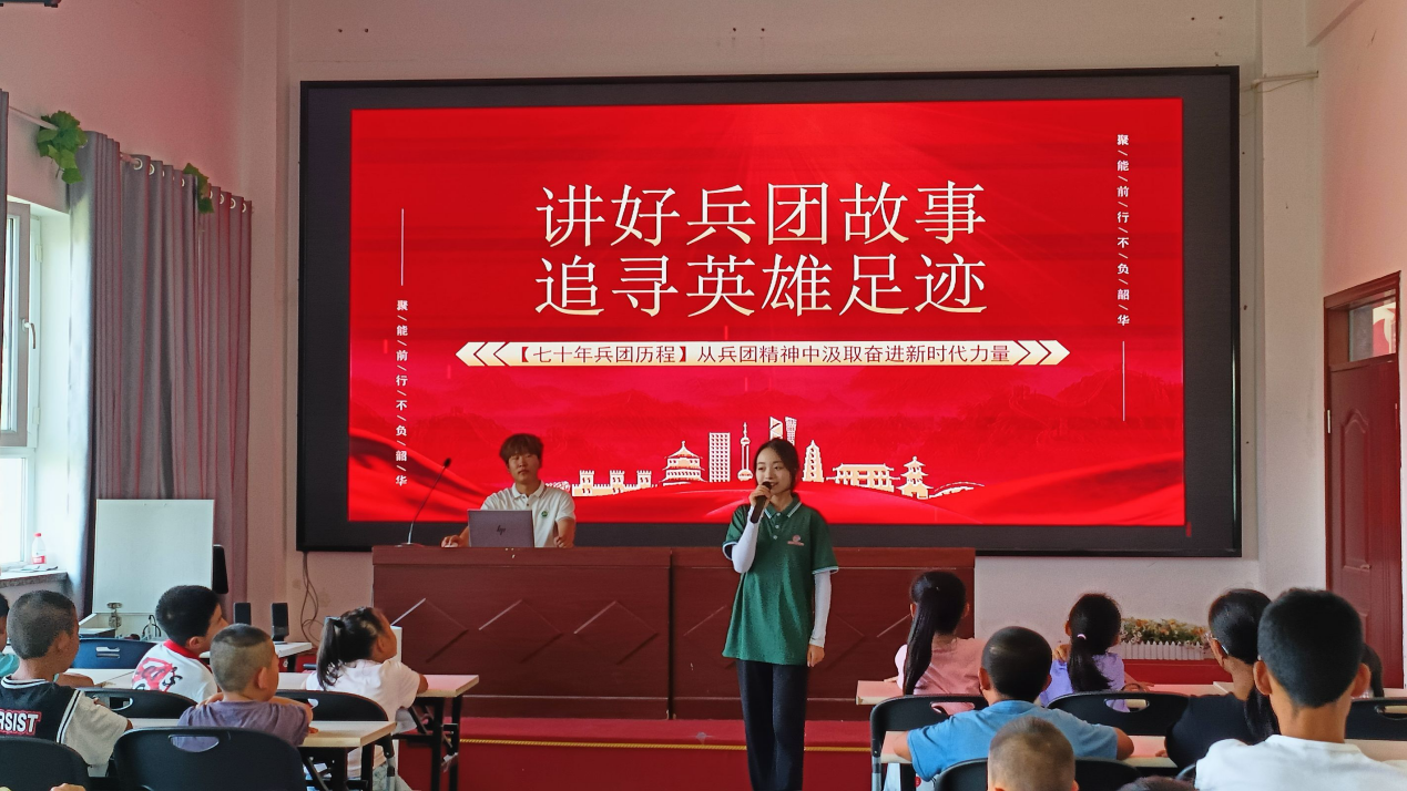 在“讲好兵团故事”系列活动中,实践团采用红色观影的震撼力量、原创绘本的细腻笔触,以及情景演绎的沉浸式体验,让各民族青少年员工们在荧幕光影变幻下见证魏德友先生风雨无阻的坚守与奉献,在绘本的每一笔一划中感受到了那份源自灵魂深处的坚韧与执着,在角色扮演中体验“活界碑”精神在艰难抉择中的闪耀与辉煌。在情景剧《活界碑》中扮演魏德友先生的七年级员工包天琪有感而发道:“今天,在老师的带领下,我了解了魏爷爷的一生,通过角色扮演,我仿佛穿越时空,与魏爷爷一同守护着祖国的边疆。魏爷爷用一生的坚守和奉献,让我深刻理解什么是责任、什么是担当。我将以魏爷爷等先辈们为榜样,努力学习,锤炼品格,将来成为对社会有用的人。”