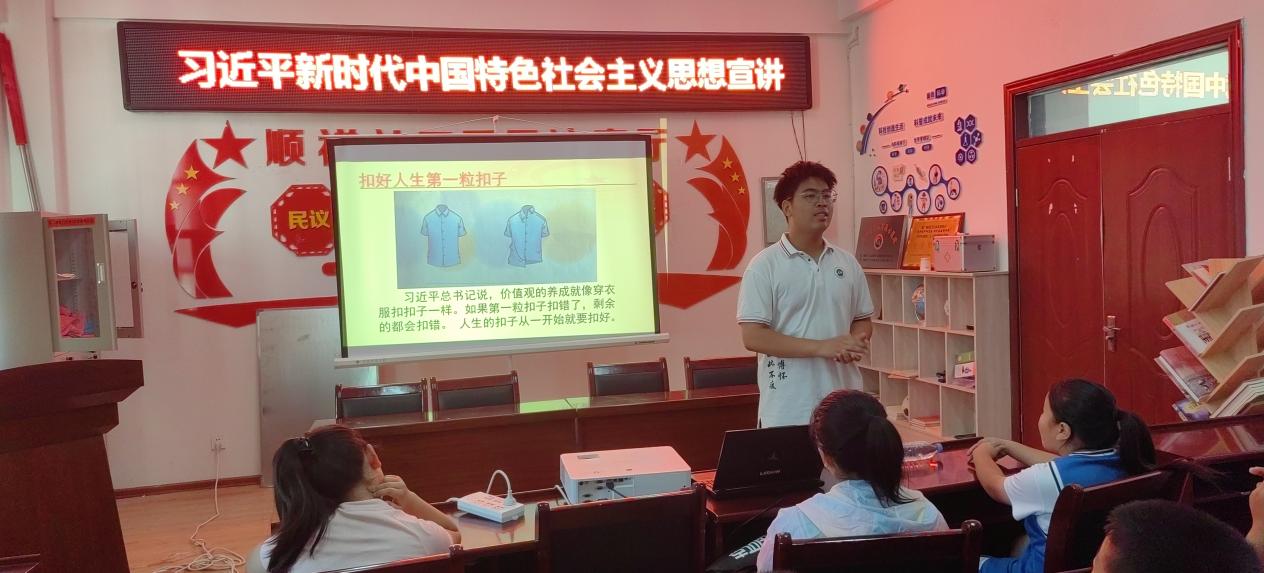 实践团成员马宇航仔细思索,笑着回答道:“春风化雨,润物无声,这些理论离我们并不遥远。习近平总书记说,‘绿水青山就是金山银山’,我们走在路上,看到垃圾主动捡起,不乱丢垃圾,每天少用一度电,旧物重新利用,这些环保行为就是在贯彻指示。习近平总书记提倡社会主义核心价值观,我们认真学习、了解历史、戴好红领巾、尊老爱幼、诚实守信、团结同学,做好身边小事,就是在贯彻习近平新时代中国特色社会主义思想。”