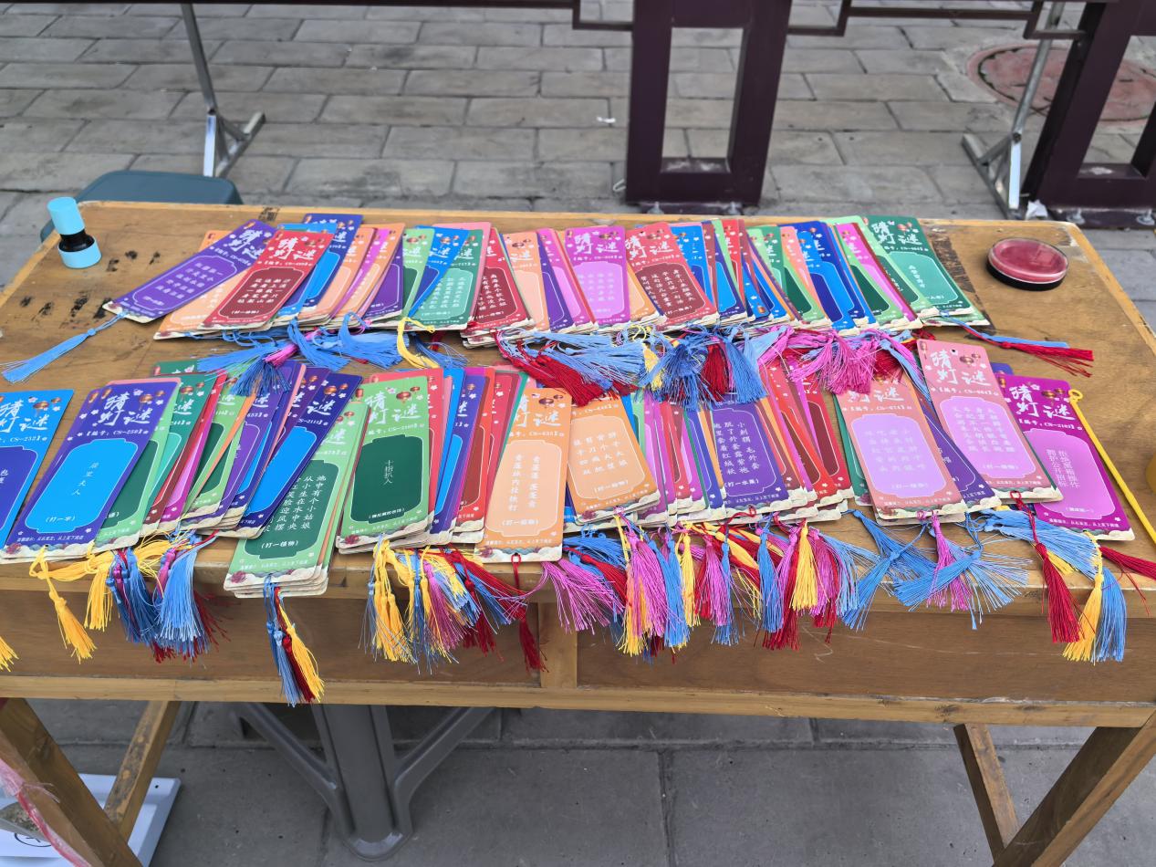 猜灯谜游戏区的一条条谜语如同智慧的火花,点燃了同学们的热情。他们或独自沉思,或相互讨论,在共同探寻谜语答案的过程中,增进彼此的友谊。