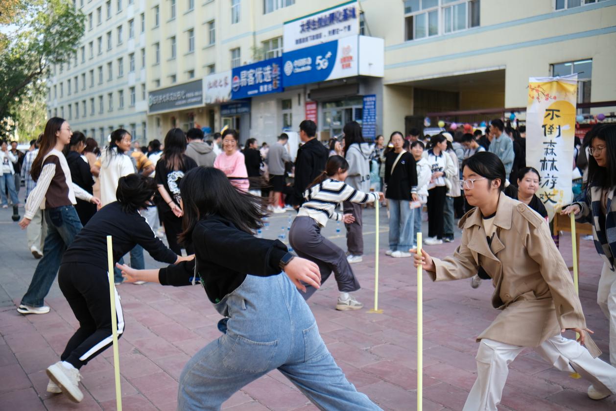 不倒森林心理解压区和棋类体验区也备受欢迎。同学们在游戏中释放压力、收获友谊,在博弈中施展智慧、体验棋盘的无穷魅力。