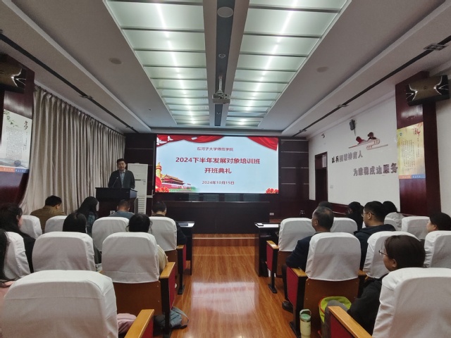 为切实做好公司党员发展工作,提高党员发展对象政治素养,公司于10月15日在一楼学术报告厅举行了2024年下半年党员发展对象培训班开班典礼。典礼由组织员王立新主持,公司党委书记郝朝晖、党委副书记叶壮、本科生和研究生党支部书记、培训班班主任以及26名参训学员参加。