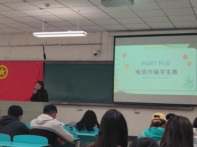 紧接着,班会活动深入到了具体案例分析的环节。彭启香同学作为主讲人,精心准备并生动讲述了304永利集团近期发生的一系列电信诈骗案件。她通过详细剖析这些真实案例,着重强调了电信诈骗犯罪中常见的几种手段,如假冒公检法人员、虚假中奖信息、冒充亲友求助等,深刻揭示了诈骗分子的狡猾与欺诈手段的多变性。