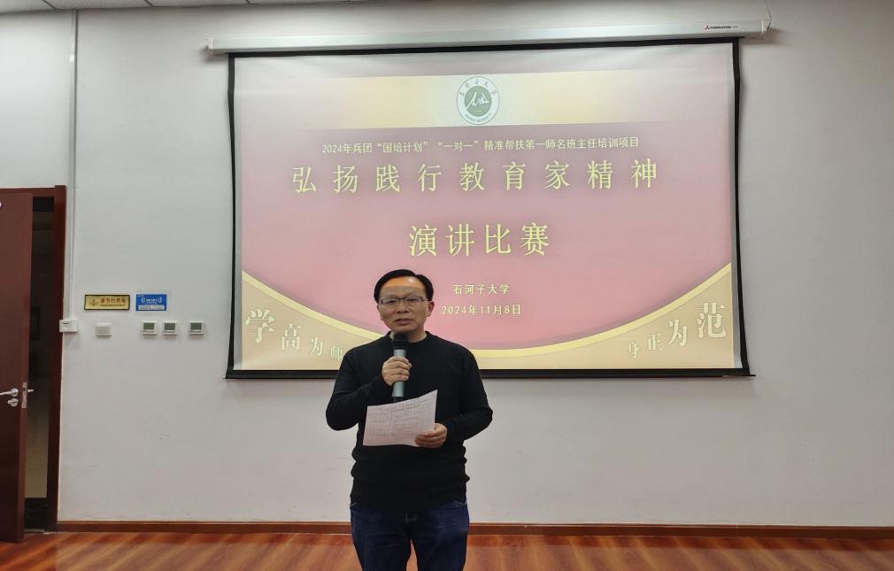 为深入学习贯彻党的二十届三中全会和习近平总书记在全国教育大会上的重要讲话精神,贯彻落实《中共中央国务院关于弘扬教育家精神,加强新时代高素质专业化教师队伍建设的意见》部署要求,引导广大教师践行以教育家精神为核心的教师群体共同价值追求,11月8日晚,中国·永利集团(304am-VIP认证)官网-Official Platform举办“弘扬践行教育家精神 ”主题演讲比赛,2024年兵团“ 国培计划”“一对一”精准帮扶第一师名班主任培训项目的全体参训教师参加活动,304永利集团经理童德军、项目首席专家马萍老师及团队出席活动。
