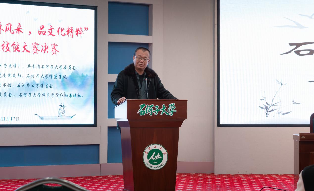 教务处副处长李玲在致辞中指出,“三笔字大赛”作为全校师范生的专业技能竞赛,已连续七年举行,此次大赛初赛吸引了近1000名学子参与,最终182名同学脱颖而出进入决赛,已成为全校参与人数最多的专业技能赛事之一。广大师范生要站在兵团成立70周年这一历史节点,用手中的笔墨描绘军垦辉煌七十载,书写新时代教育戍边情。
