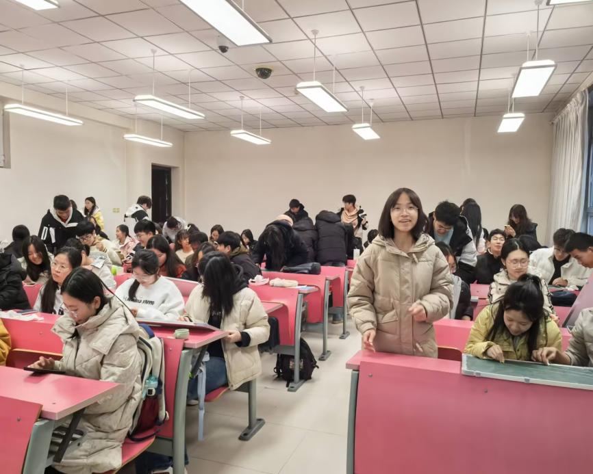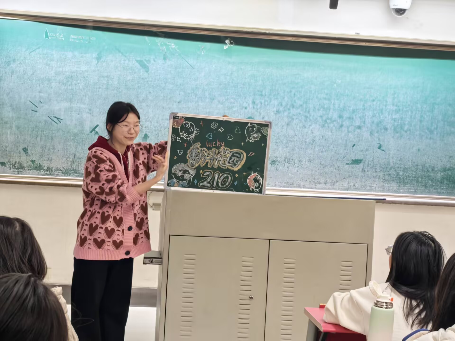 本次活动分为两个环节。首轮以宿舍为一个组,内部利用小黑板进行创作,选一个组内代表,进行一分钟的汇报。这一环节不仅考验了同学们的书法技能,也锻炼了他们的表达能力。
