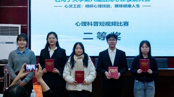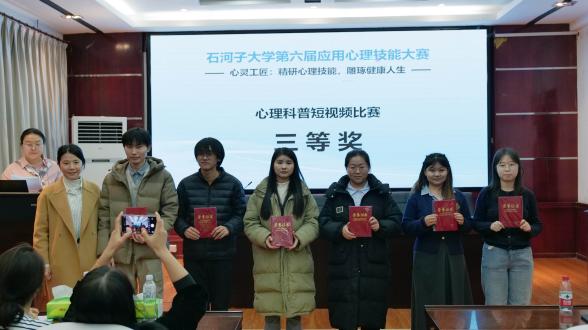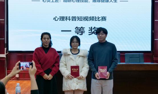 心理科普短视频组评委老师向该组获奖同学颁发获奖证书