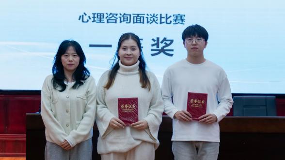 心理咨询面谈组评委老师向该组获奖同学以及三名优秀来访者颁发获奖证书