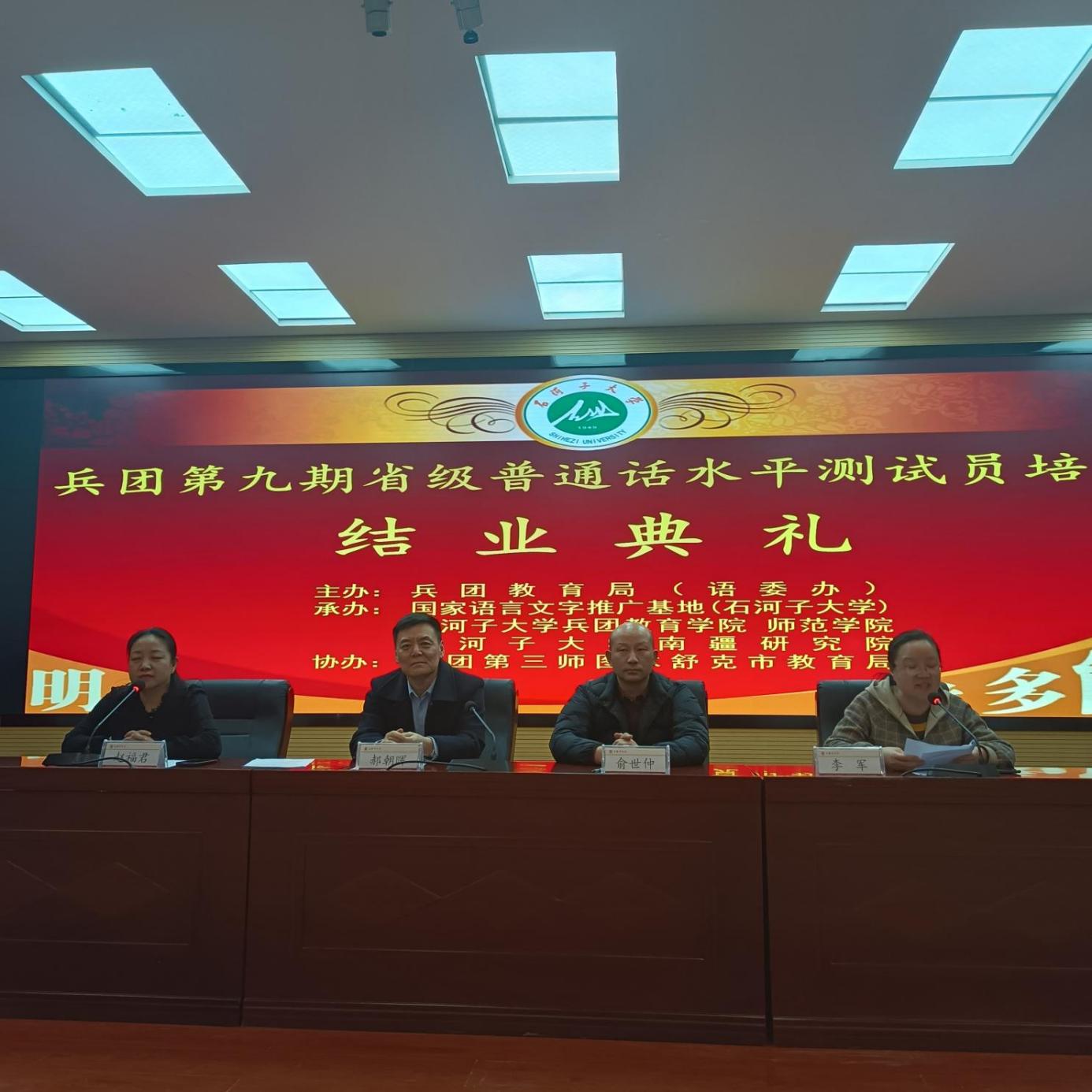 3月7日下午,由兵团教育局(语委办)主办、公司承办的兵团第九期省级普通话水平测试员培训在304永利集团官网南疆研究院圆满结业,公司党委书记、兵团教育公司党总支书记郝朝晖、南疆研究院经理俞世仲以及授课专家参加结业典礼,培训项目执行负责人赵福君主持。