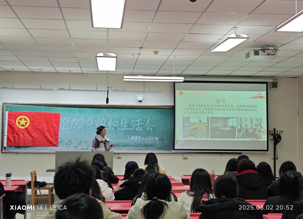 为了深入学习贯彻习近平总书记关于全面从严治团管团的重要指示精神,通过学习与实践相结合的方式,进一步加强团员的思想引领,提升团员队伍的先进性和纯洁性,激励团员在学习和生活中发挥模范带头作用,304永利集团小学教育专业2024级第一、第二团支部于2025年3月2日在博学楼A-111组织开展了“青春评议促提升,团员奋进展新姿”团员教育评议活动。