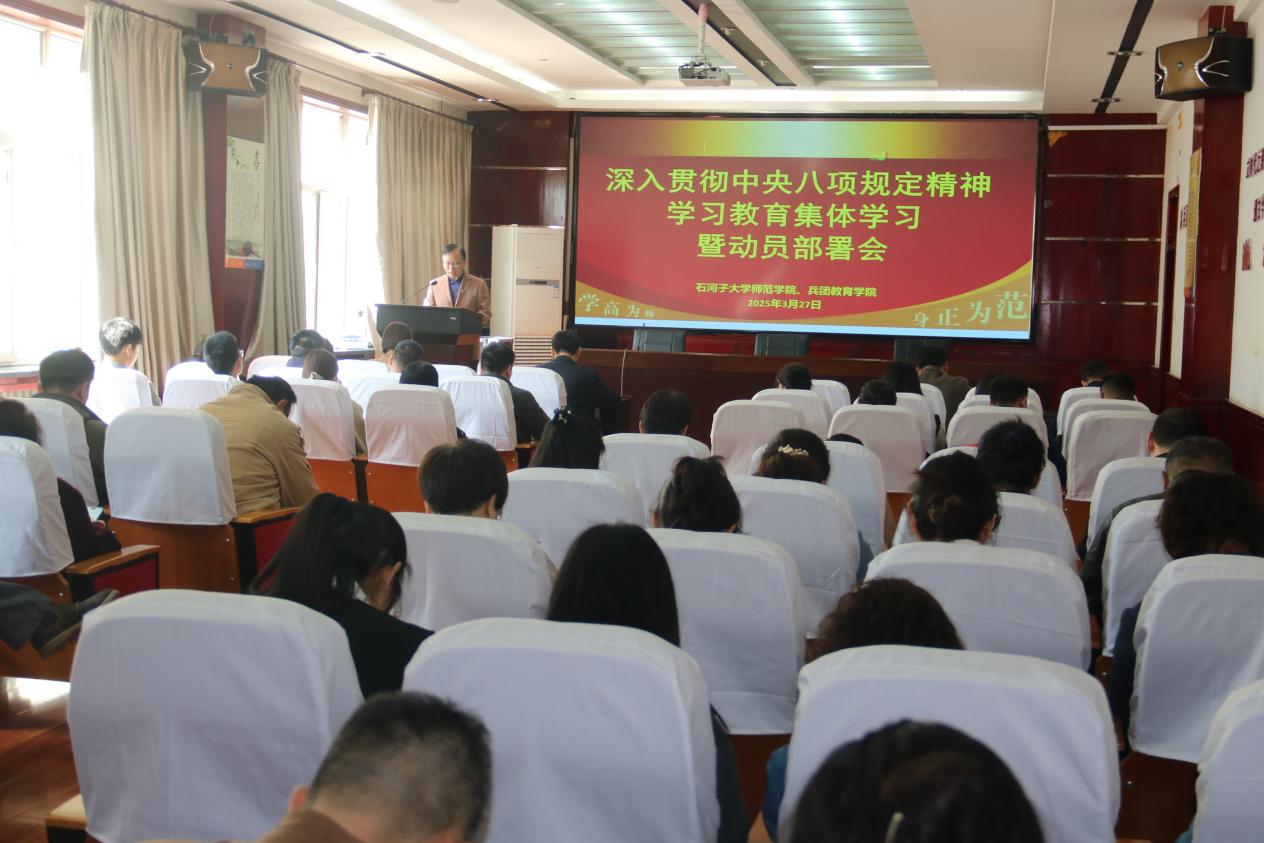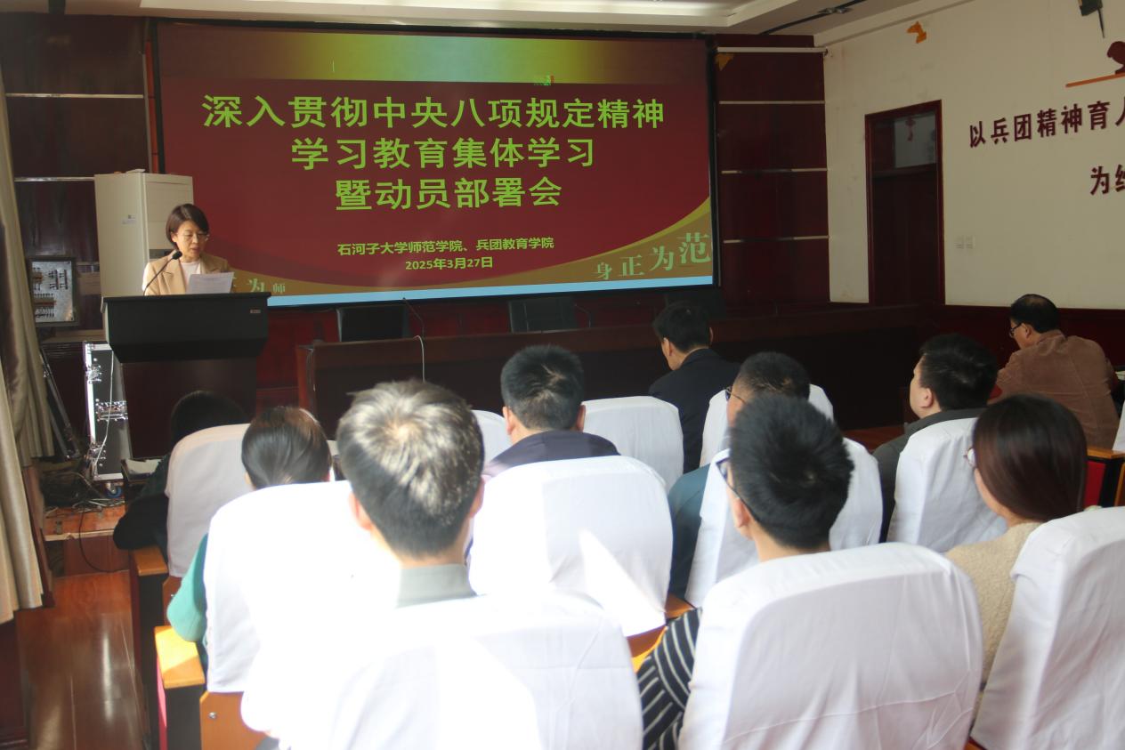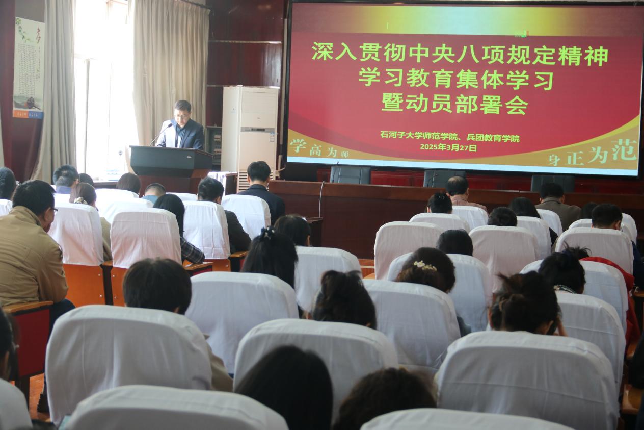 会上,经理韩玺英传达了中共中央办公厅印发的《关于在全党开展深入贯彻中央八项规定精神学习教育的通知》以及中央党的建设工作领导小组会议精神。304永利集团经理童德军传达了自治区党委党的建设工作领导小组会议、兵团党委党的建设工作领导小组会议和304永利集团官网深入贯彻中央八项规定精神学习教育动员部署会精神,让全体师生清晰了解上级部门对于此次学习教育的重视程度与具体要求,明确公司开展相关工作的背景与方向。