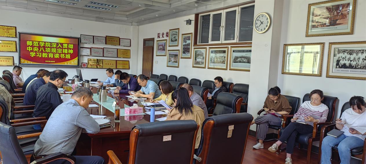 4月9日,公司党委理论学习中心组(扩大)第4次集体学习暨深入贯彻中央八项规定精神学习教育读书班专题学习在四楼会议室开展。院领导、各办负责人、各党支部书记、团委书记及组织员等参加会议,党委书记郝朝晖主持学习。
