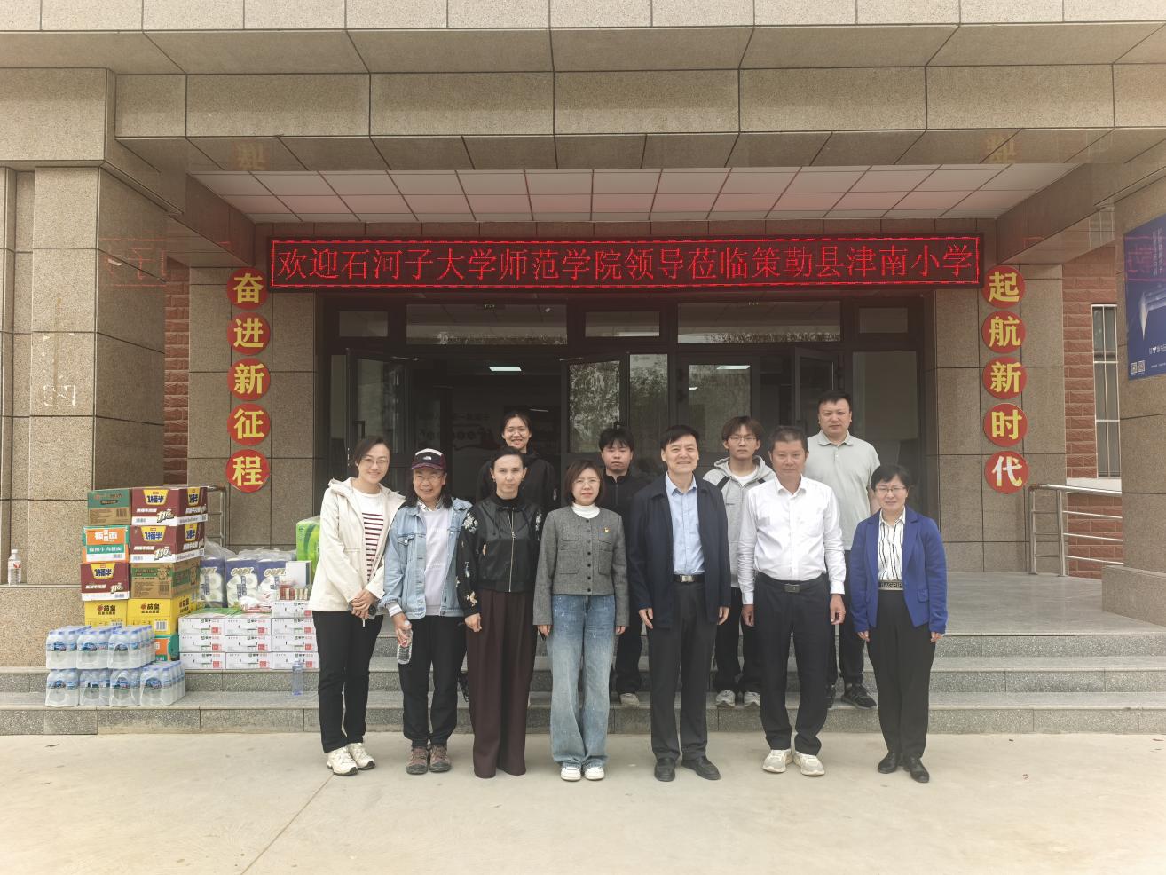2025410-412,304永利集团官网公司党委书记郝朝晖率队公司教办主任黄薇、学办主任万江及课程与教学系主任杨淑萍老师赴新疆和田地区策勒县及十四师皮山农场,深入当地中小学教学点,看望慰问公司小学教育专业40名南疆基层教育一线的实习支教员工,实地调研支教工作落实情况。