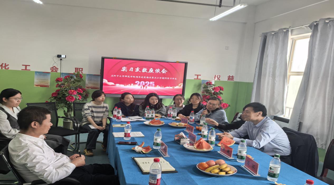 在策勒县第五小学召开的支教生座谈会上,支教生结合实践汇报了国家通用语言教学、课后帮扶等创新举措。书记强调:“支教既是育人使命,更是乡村振兴的重要纽带”,勉励师范生“将知识播撒在南疆大地,在‘大思政课’中锤炼责任担当”。当地教育局蔡炼书记对支教生在提升基础教育质量、推进文化润疆中发挥的作用给予高度的评价。