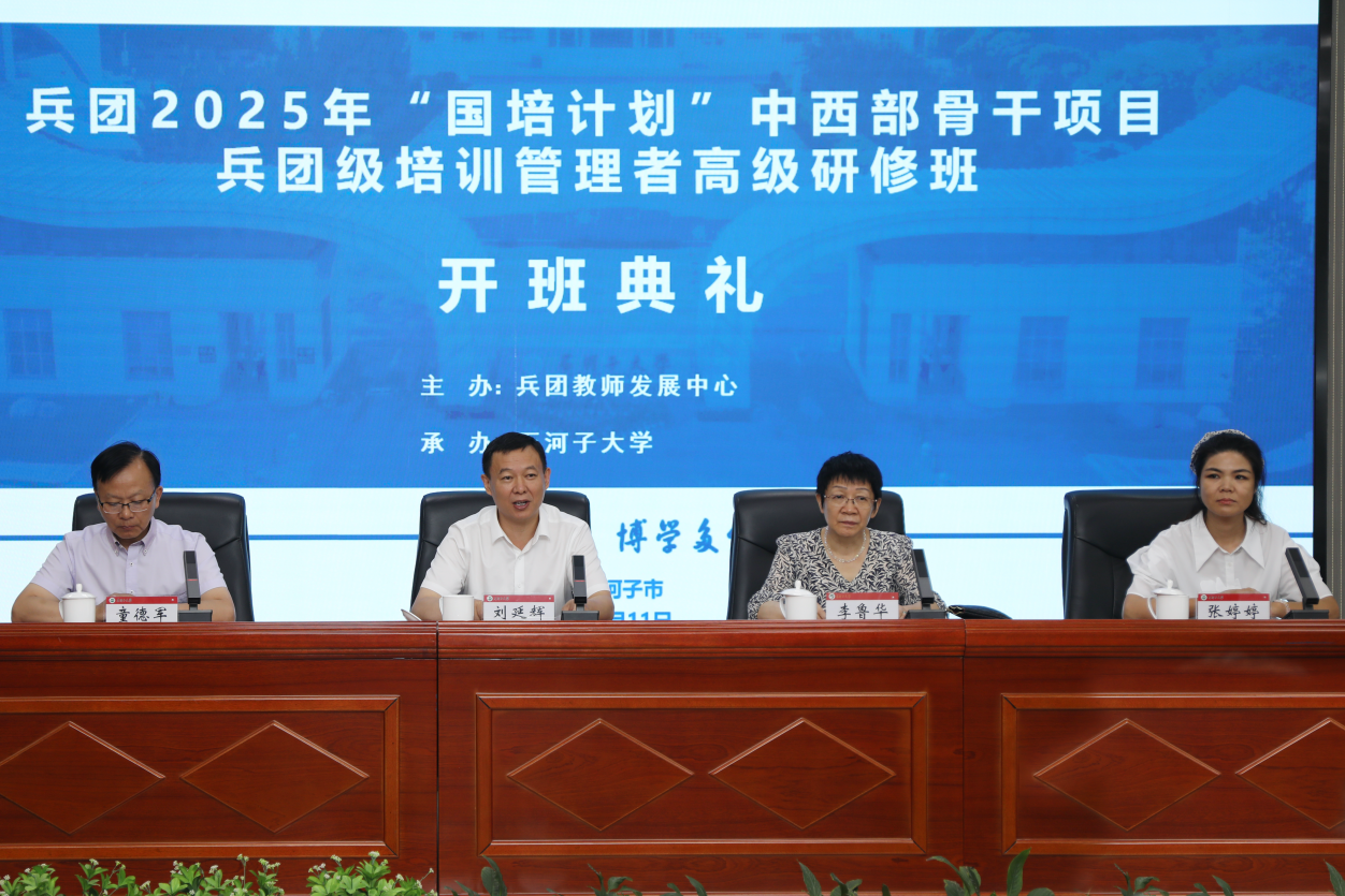 7月11日,“国培计划”中西部骨干项目兵团级培训管理者高级研修班开班典礼在公司举行,兵团教育局党组成员、副局长刘延辉,公司党委常委、副董事长李鲁华出席。