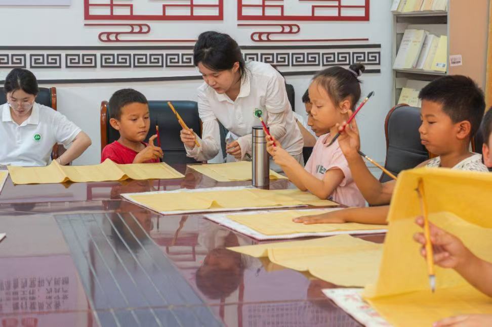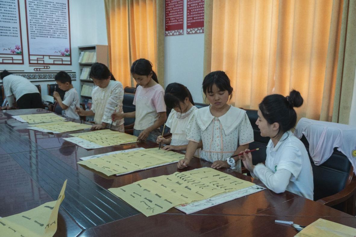 实践团成员胡瑜瑕软笔书法教学 刘洋供图