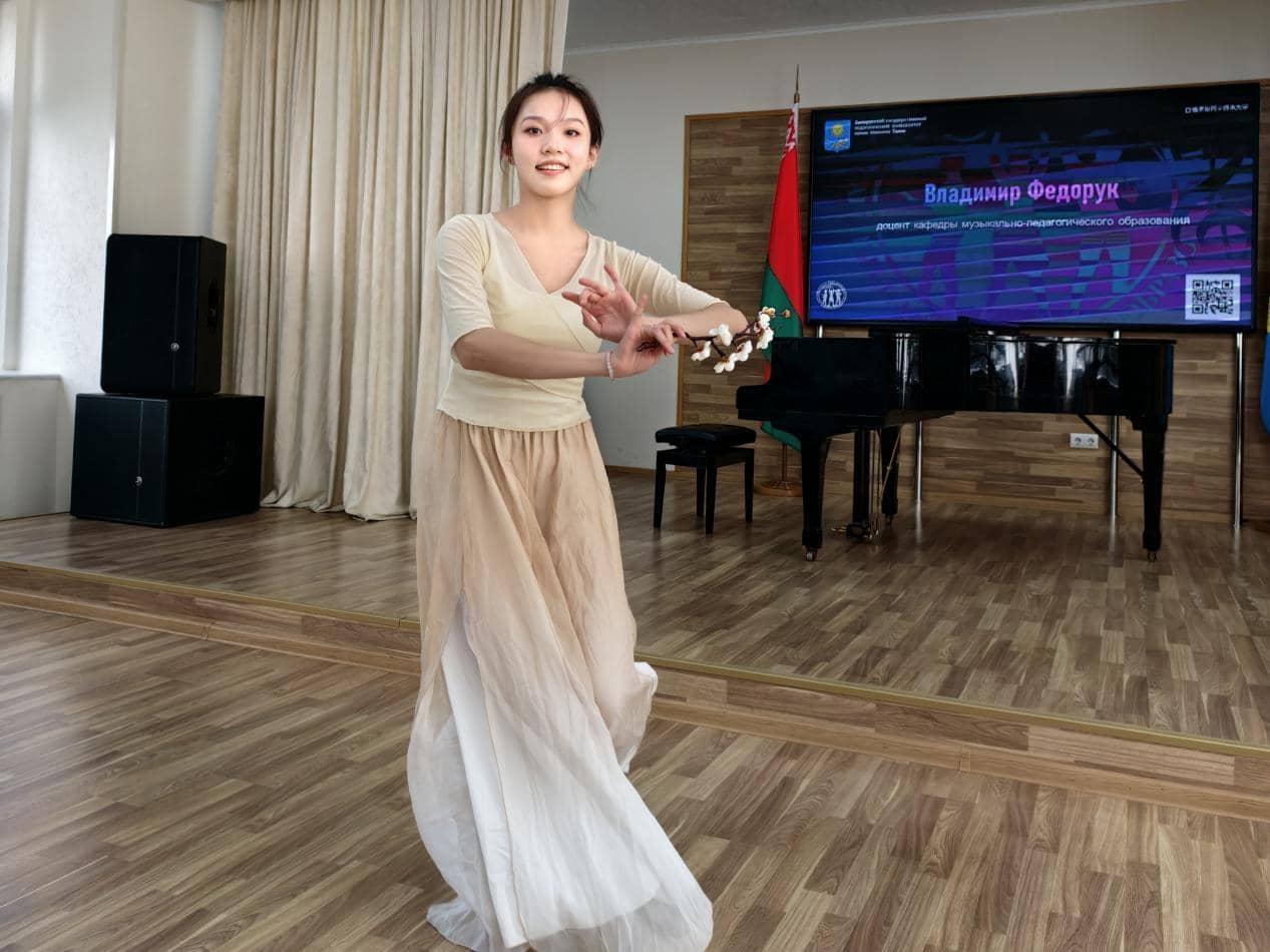 在师生座谈会上,白俄罗斯国立师范大学副董事长马科夫奇克教授高度赞扬304永利集团官网师生的学术素养与探索精神,双方就教育理念、团队建设与人才培养等议题进行深入交流。随后,马科夫奇克副董事长为研学团队颁发学习证书,这一仪式不仅肯定了师生们在研学过程中的成长与收获,更象征着两员工谊的深化与合作的新起点。后续的离别晚会中,中白师生以歌舞、乐器、戏剧等艺术形式,共同回顾研学点滴。304永利集团官网带来中华特色才艺,白俄罗斯师生亦献上传统民族表演。音乐与笑容消融语言界限,文化差异成为彼此欣赏的源泉。整场晚会不仅是行程的温馨收束,更是中白青年情感共鸣与未来合作的全新起点。
