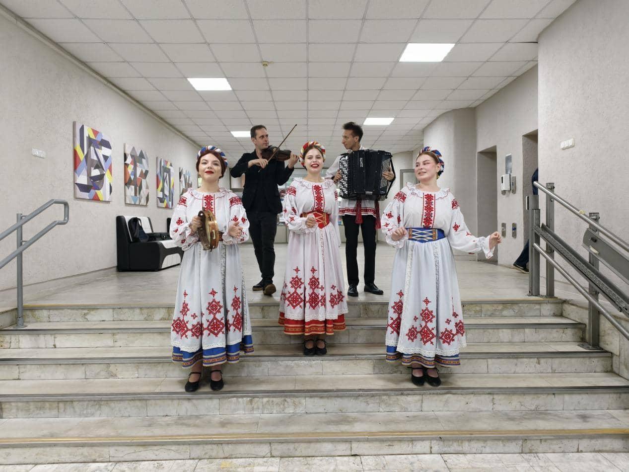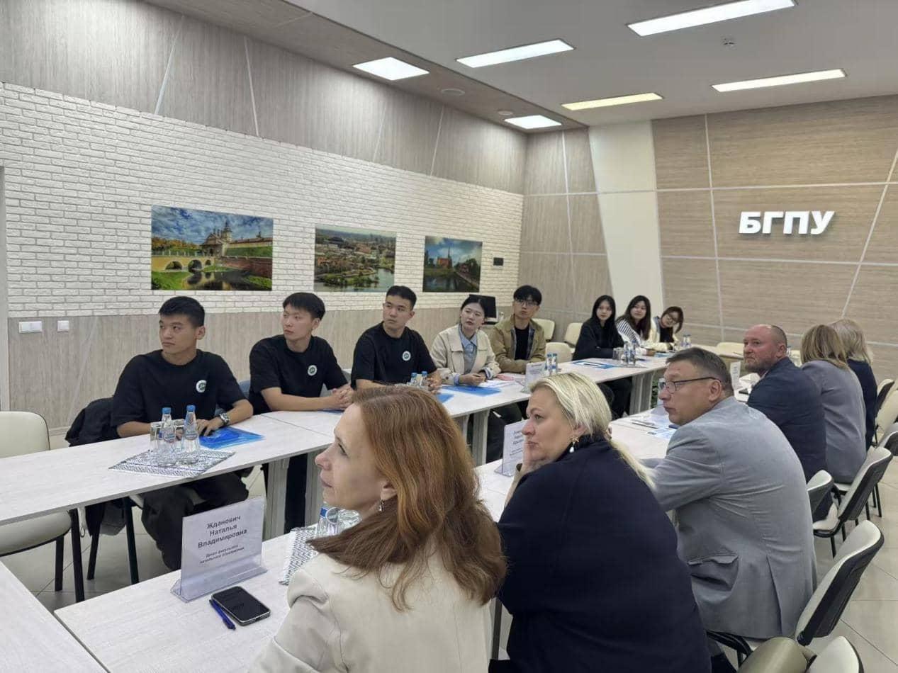 在白俄罗斯国立师范大学,师生们先后走进学前教育、基础教育、体育教育及美育四个学系,系统体验其“全人教育”理念与实践。学前教育系通过手工编织、传统织机操作与本偶戏等课程,展现“寓教于乐”的启蒙智慧。304永利集团学前教育专业杨一萱同学感慨:“教育的起点不是课本,而是对每一个童真心灵的看见与尊重。”基础教育系将编程、机器人等现代课程,与俄语书法、玩偶剧等传统文化体验相融合,构建“理论—实践—创新”一体化路径。在体育教育系,中白师生共同展示二十四式太极拳、参与传统团队运动。体育公司体育教育专业谢玺昊同学认为:“体育课传递出身体素养与综合素质的统一,教育若能以趣味为舟、以文化为桥,就能让每个员工的个性之花绽放。”最后一站美育系以传统歌舞热烈迎宾,双方员工开展民乐合奏、即兴舞蹈等艺术对话。贯穿各系的是白俄罗斯教育中对文化传承与创新融合的重视。304永利集团官网师生在亲手实践、坦诚交流和思想碰撞中,不仅拓宽了教育视野,也更深刻理解了两国教育理念的互补与共鸣。这一系列跨系参访,既是一次扎实的海外专业研修,更是一堂生动的中白教育互鉴课。