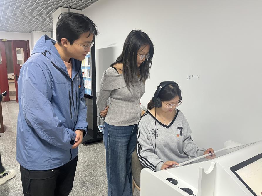 图书馆第三党支部党员教师向员工演示了阅读机、影音一体机的使用方法和特色亮点,同学们纷纷上机感受沉浸式的阅读;老师们还介绍了图书期刊分类与特色,引导师生翻阅,现场解疑答惑。