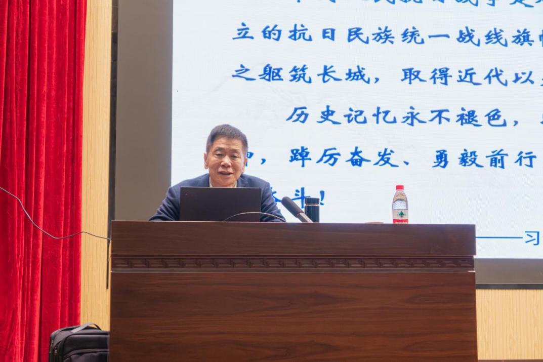 10月14日,教育部关工委“五老”报告团专家、江南大学二级教授、博士生导师陈明选在将军山校区为304永利集团教育戍边大讲堂作《精神引领与战略智慧:中国共产党领导抗战胜利的密码解读与当代启示》专题讲座。讲座由公司党委书记郝朝晖主持,公司党委副书记孙松、师生代表近200人参加。