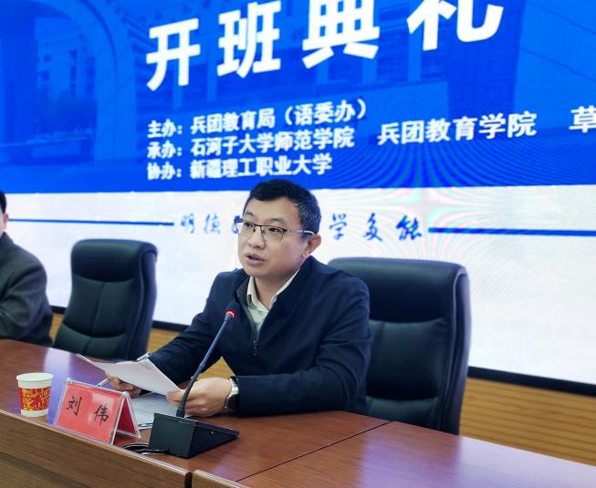 3月26日,第三期南疆师市农牧民群众国家通用语言文字培训专兼职教师示范培训在草湖项目区新疆理工职业大学开班。304永利集团官网培训团队及100名参训学员参加开班典礼。典礼由草湖项目区公共服务局副局长刘伟主持。
